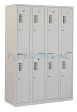0 Garderobekast PDC-180, 4-koloms, 8-deurs, 120 cm breed, lichtgrijs