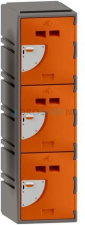 Dit model bestaat uit één kolom met drie deuren. De kolombreedte bedraagt 38 cm, de deuropening 30 cm en de binnenmaat 29 cm – ideaal voor het opbergen van een helm, jas of tas. De kast heeft een hoogte van 130 cm en een diepte van 45 cm.