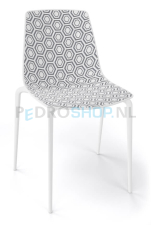 Dankzij de ontwikkeling en toepassing van een innovatief, gepatenteerd productiesysteem geeft de unieke, harmonieuze stijl van de geometrische opdruk een sterk karakter en een onontkenbare schoonheid aan Alhambra. Alhambra bestaat uit een meerkleurig, technopolymere kuip die past bij verschillende frames. Hierdoor is de stoel uiterst geschikt voor verschillende oplossingen, ideeën en ambities in verschillende ruimten en voor zeer persoonlijke smaken.