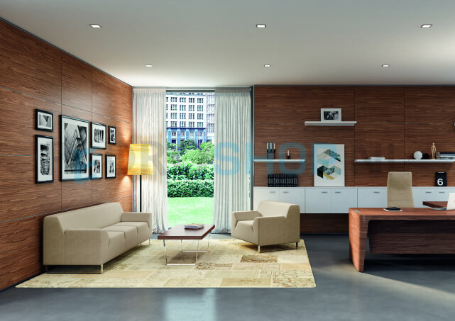 Eigentijdse zitelementen met vormvaste koudschuim zittingen en chromen ringpoten.