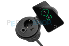 Spot plus is een elektrificatie inbouwmodule met een klapdeksel voorzien van 1x stroom, 1 x USB charger en 1x kabeltunnel en een draadloze oplader aan de binnenzijde van de deksel.
