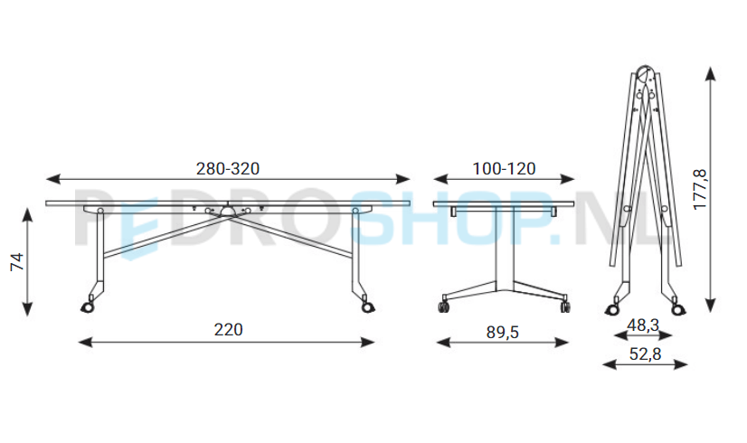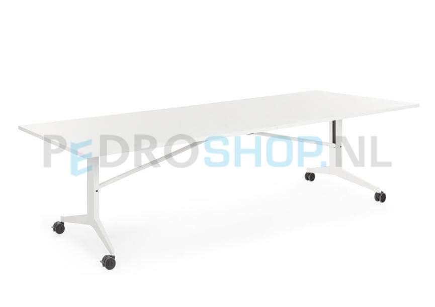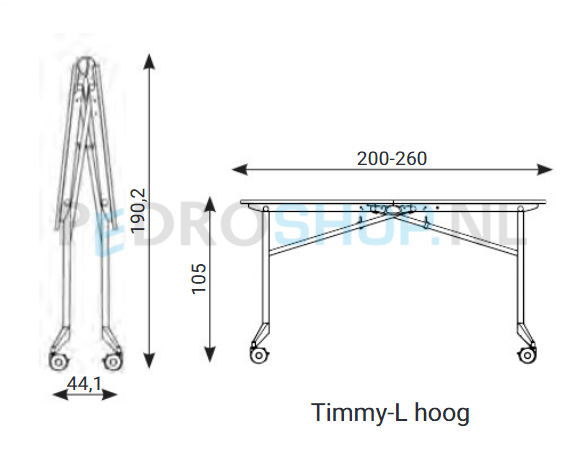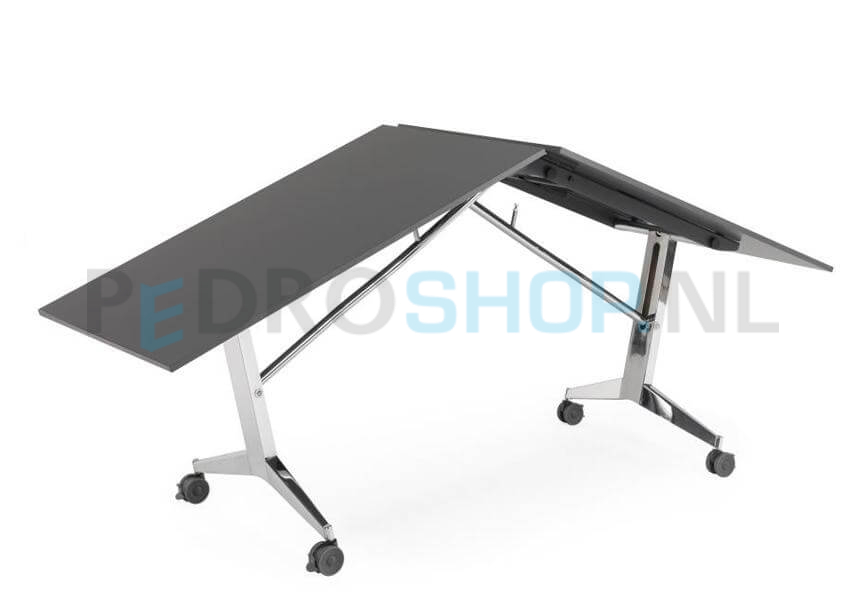 Timmy-L vouwtafel heeft een stoer, robuust frame met 10cm grote zwenkwielen uitgevoerd met rem. Leverbaar in 5 kleuren onderstel met antraciet draagframe. De bladen worden voorzien van koppelbeugels met veilig bladveersysteem wat vingerklemmen voorkomt. Met Timmy-L kunt u een meetingtafel creëeren van 280x100cm tot 320x120cm. TImmy-L frame wordt voorgemonteerd geleverd.