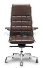 Vega Hit - 65mm geremde wielen - Gepolijst aluminium voetkruis - New generation mechaniek anti knee-tilt - Blokkeerbaar in 5 posities - Zitting en rug met koudschuim - Standaard armleggers gepolijst aluminium of zwart met zwarte ABS opdekje - Mogelijk in S of L stiksel of zonder stiksel P