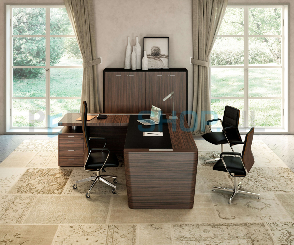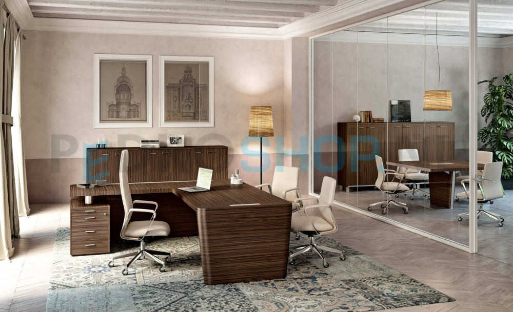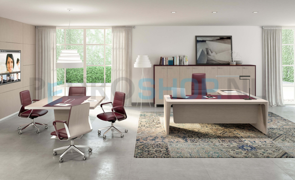 De exclusieve management-lijn X8 van het Italiaanse Officity, strak en puur design. Massief aluminium frames in mat wit of mat donkergrijs (shadow grey) met 10mm dunne geprofileerde bladen van melamine, glas of gelakt hout.
