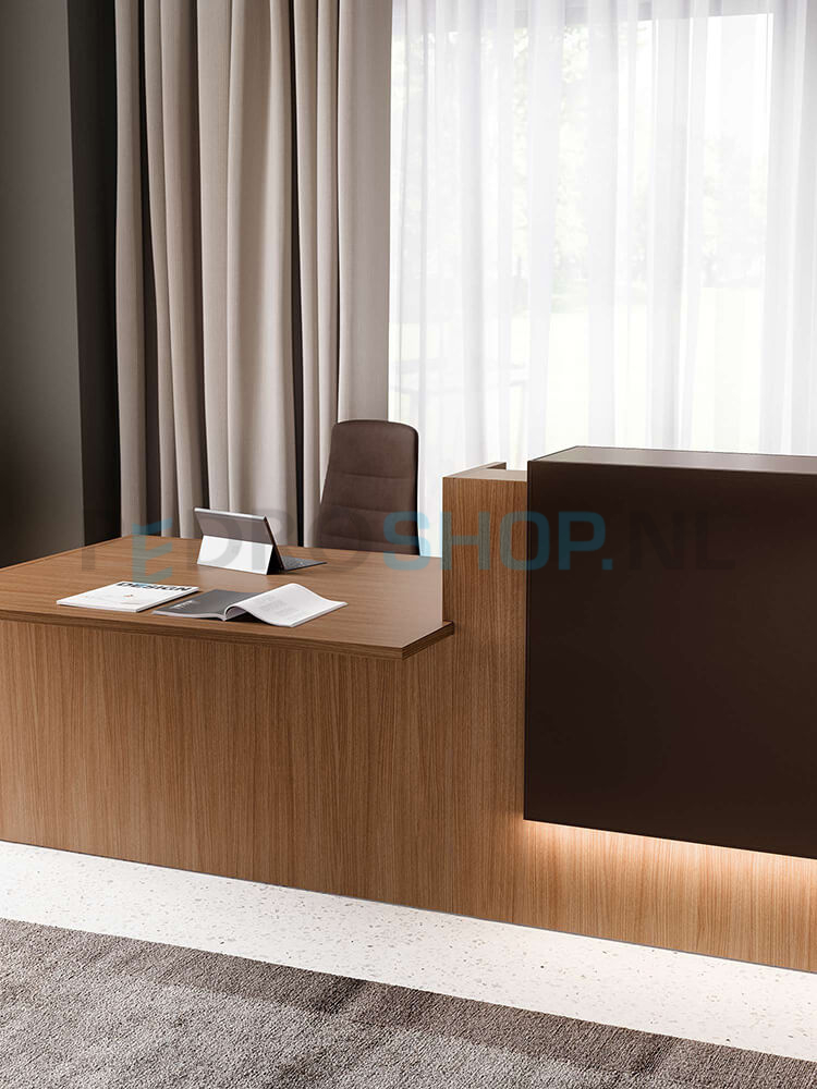 Z2 is een uiterst modern en modulair balieprogramma. Uitgevoerd in duurzaam Melamine met prachtige verstekhoeken. De opzetelementen zijn desgewenst in melamine te leveren of in een van de vele lakkleuren . Een ruime keuze aan opties zoals LED verlichting of kabeldoorvoeren , als de keuze voor hoge of lage elementen behoren tot de mogelijkheden. Andere kleuren en of maten op aanvraag.