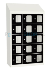 0 SQ Classic kantine locker, 3-koloms, 15-deurs, transparant venster, zwart