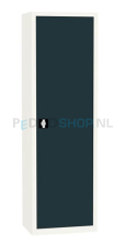 Deze draaideurkast is geheel na eigen wens samen te stellen. De draaideurkast kent voor de deuren de kleurcode: Antraciet ral 7016 en voor de ombouw: Wit ral 9010.
