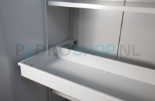 De uittrekbare lade is een praktische uitbreiding voor de SQ draaideurkast SQ-203 (100 cm breed). Ideaal voor het veilig en overzichtelijk opbergen van kleinere kantoorartikelen, documenten of persoonlijke eigendommen. De lade is eenvoudig te monteren en soepel uittrekbaar, wat zorgt voor extra gebruiksgemak en efficiëntie in iedere werkomgeving.