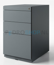 De Bisley ladenblokken zijn leverbaar in veel verschillende kleuren! Zo is er altijd wel een kleur beschikbaar welke past op uw kantoor. Dit ladenblok kent de kleur antraciet. Deze kleur kent de RAL kleur RAL7016. De coating is een structuur coating. Let op: de kleur zilvergrijs is een gladlak coating.