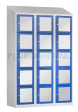 0 Lockerkast PDC-330, 3-koloms, 15-deurs, transparant venster, blauw