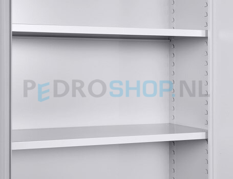 Bijgeleverd worden 4 legborden. De legborden zijn geschikt voor opbergen van laterale hangmappen met een spoorbreedte van 33 cm. Maakt u gebruik van ordners? Dan kunnen er in de PDC-180 4 ordnerrijen hoog worden opgeborgen. De legborden kunnen op gewenste hoogte in de kast worden geplaatst. Om de 3,5 cm kent de kast de mogelijkheid om legborden te plaatsen. De legborden kunnen een maximaal verdeeld gewicht dragen van 50 kg.