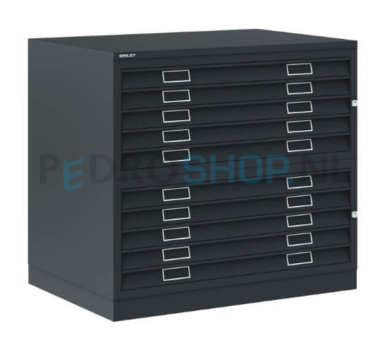 Tekeningkast Bisley A110, A1 formaat, 10 laden, zwart