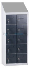 Met een afmeting van h109 x b43 x d30 cm biedt de kast voldoende ruimte voor 10 mini lockers, verdeeld over 2 kolommen met ieder 5 lockers. Elke locker heeft een afmeting van h16 x b15 x d27 cm.