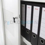 De kast wordt standaard uitgevoerd met soft close sluiting. Documentatie, ordners of gereedschap kan veilig in de PDC-DSDA120-160 worden opgeborgen. De kast is namelijk afsluitbaar middels een cilinderslot. Bijgeleverd worden 2 sleutels, waarvan 1 kniksleutel.